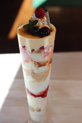 とろける口どけの自家製クレームブリュレを主役に。香ばしいキャラメルの甘いコクと甘酸っぱいラズベリーが重なり合う贅沢で洗練された大人のパフェ。